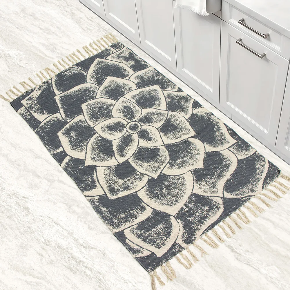 Πατάκι κουζίνας Eldus από την εταιρεία Lino Home! Το πατάκι είναι πλεκτό με μοντέρνο, έθνικ σχέδιο και κρόσια στο τελείωμα που προσθέτουν μια γοητευτική διάθεση σε κάθε κουζίνα. Το πατάκι Eldus αναδυκνύει μια ιδιαίτερη αισθητική, δίνοντας αέρα και χαρακτήρα στο χώρο. Τα κρόσια στο τελείωμα αποτελούν μια πρωτότυπη πινελιά και φινέτσα. Είναι κατασκευασμένο από κυρίως βαμβακερά νήματα ώστε να είναι ταιριαστό σε κάθε κουζίνα, αλλά και νήματα πολυέστερ για έξτρα ανθεκτικότητα. Το πατάκι Eldus είναι ένα απόλυτα λειτουργικό πατάκι που συμπληρώνει εξαιρετικά κάθε κουζίνα.